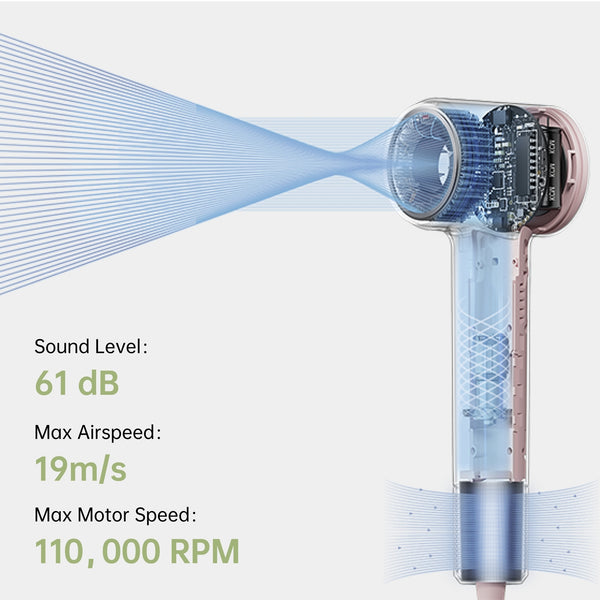 Les sèche-cheveux traditionnels peuvent atteindre une température de 140°C (284°F), mais les sèche-cheveux de la série Laifen utilisent des flux d'air puissants combinés à des températures plus modérées pour sécher les cheveux.