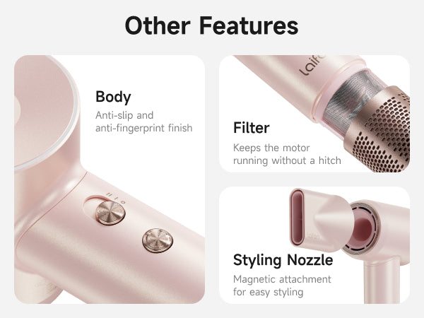 - [Lo speciale LED a 3 colori di Laifen mostra la temperatura a colpo d'occhio, in modo da poter applicare sempre la giusta quantità di calore per una routine di cura dei capelli senza interruzioni.