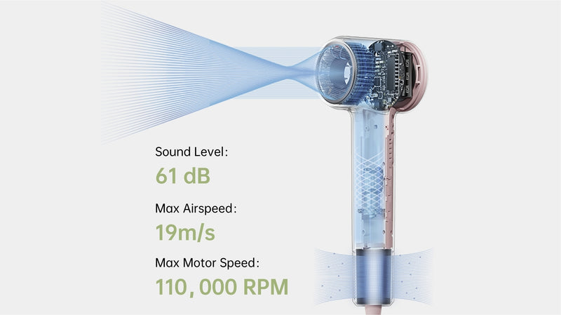 - The Mini's powerful 110,000 RPM motor dries your hair in no time.