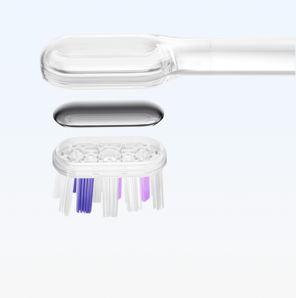 The soft, ultra-thin bristles reach deep into the gaps between teeth while still being gentle on gums. The brush head's arc-backed design easily reaches the back molars.