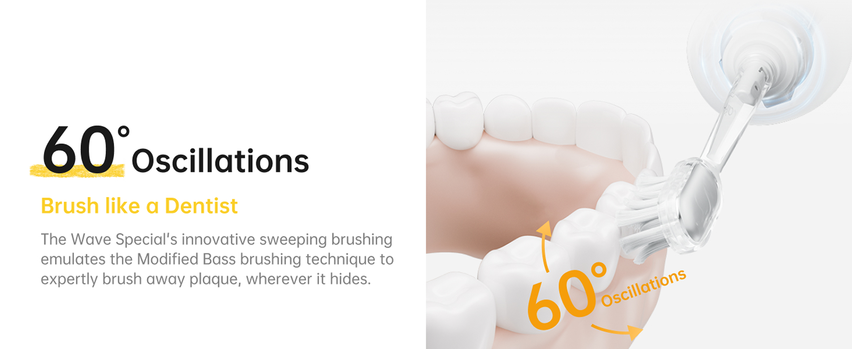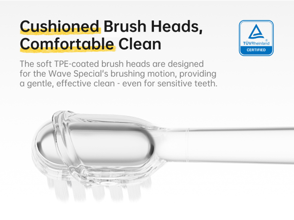 [Le oscillazioni a 60° di Wave Special emulano senza sforzo la tecnica di spazzolamento Modified Bass, raccomandata dai dentisti, per una pulizia superiore. Le sue rilassanti 26.000 vibrazioni/min. sono adatte a tutti gli utenti, compresi i principianti e coloro che hanno denti sensibili.