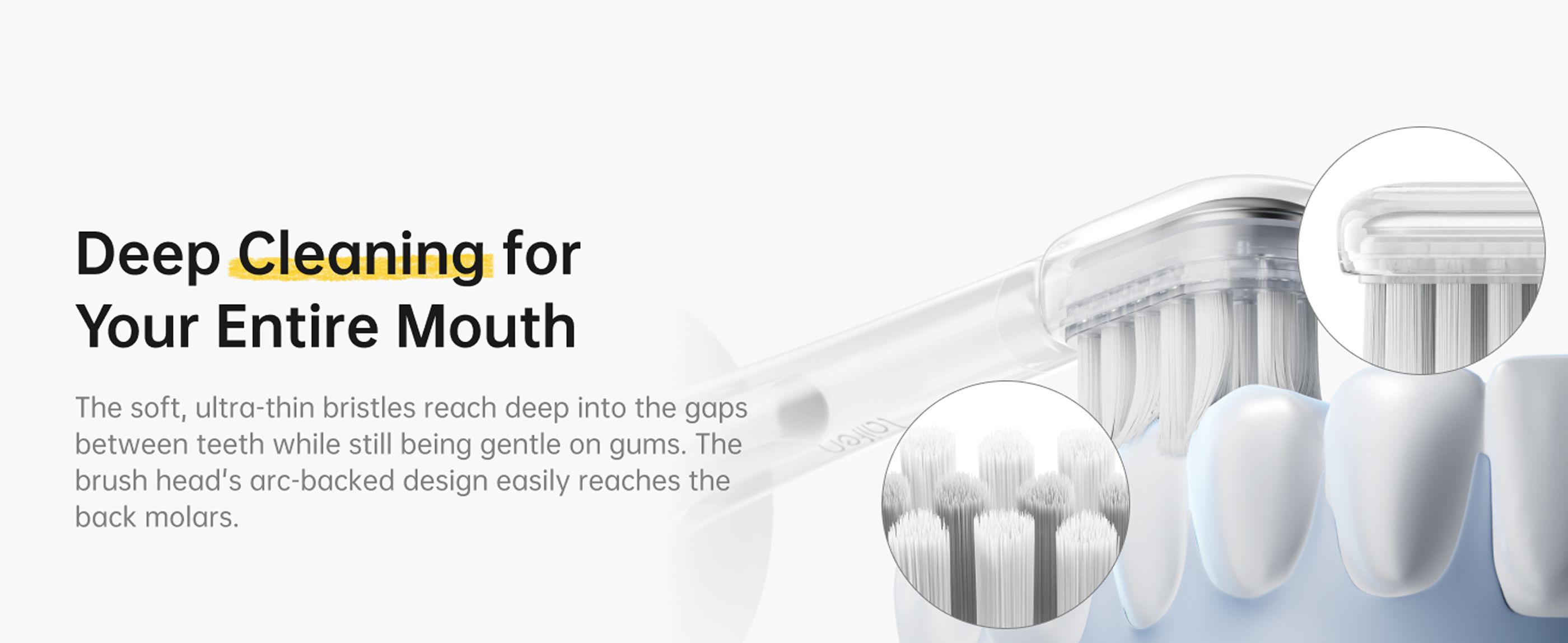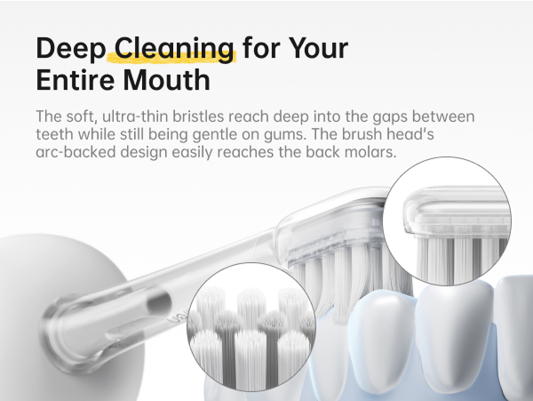 [Delicato da davanti a dietro] Le testine dello spazzolino sono rivestite con un morbido rivestimento in TPE alimentare per un'esperienza di spazzolamento rilassante. Le setole ultra-fini e rispettose delle gengive puliscono a fondo denti e gengive e sono montate con un avanzato processo di ciuffo senza rame, che le fissa in posizione e impedisce la formazione di ruggine.
