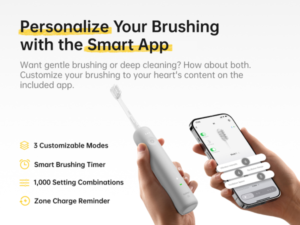 [App intelligente] L'App Laifen consente di personalizzare la spazzolatura attraverso 1.000 possibili combinazioni di impostazioni di spazzolatura e guida l'utente verso un sorriso splendente con il timer di spazzolatura intelligente e il promemoria di cambio zona.