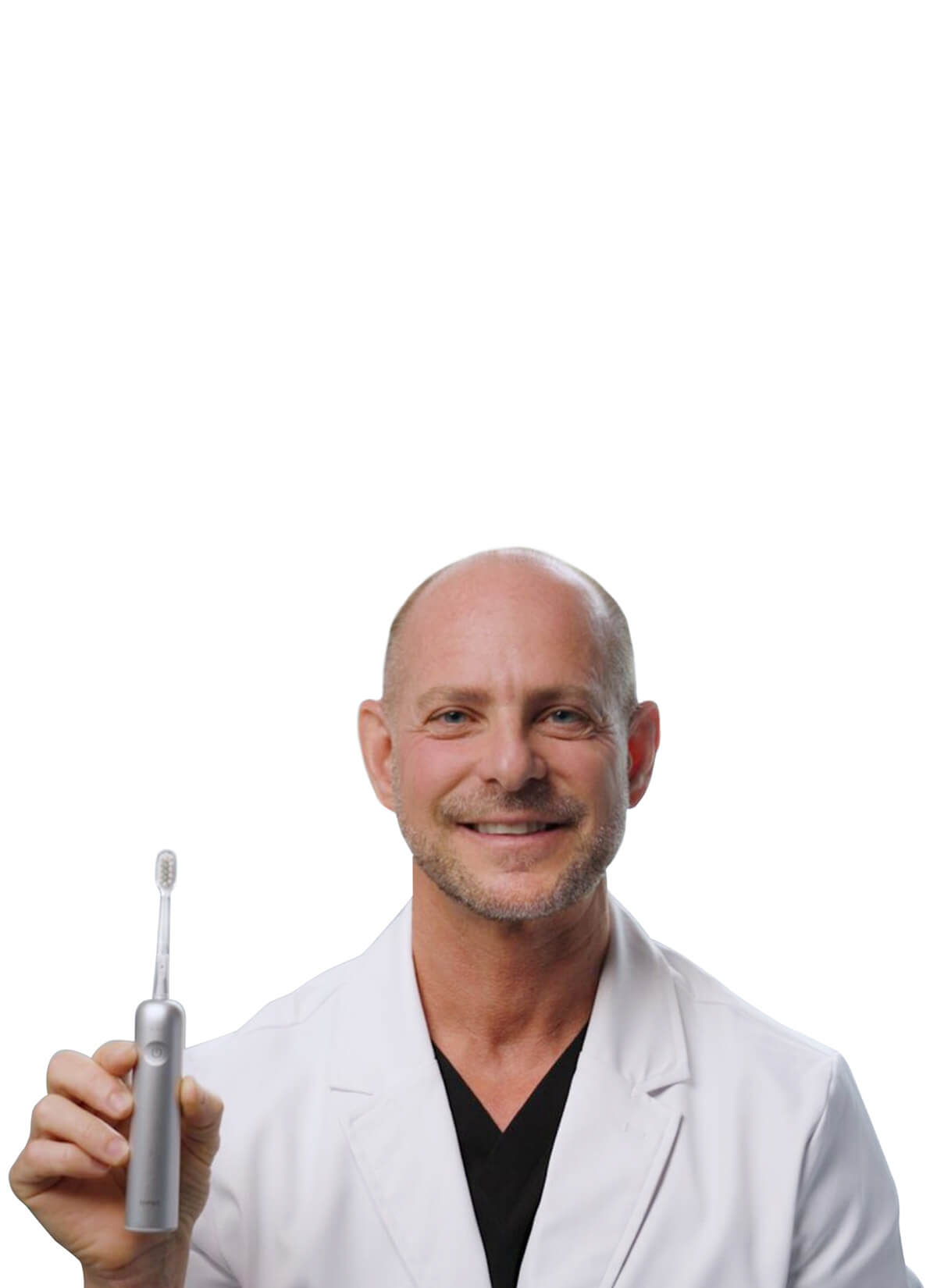Een innovatieve poetstechniek combineert oscillatie en vibratie, aangedreven door een sterke zelfontwikkelde motor, en zorgt voor een diepere reiniging dan bij handmatig poetsen.