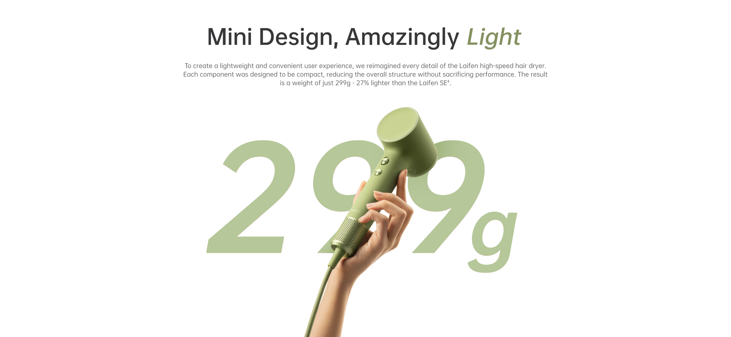 - [FRESH LOOK & FEEL] De eerste Laifen haardroger die UV Tactile verf gebruikt, waardoor de Mini fijnkorrelig aanvoelt en een verbeterde en COMFORTABLE GRIP heeft. Wordt geleverd in 4 matte kleuren die passen bij jouw stijl.