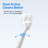 De borstelharen meten bovenaan 0,02 mm met een taps toelopend percentage van 90%. In combinatie met de 60° rotatie reinigt de Wave de tanden dieper dan ooit tevoren.
