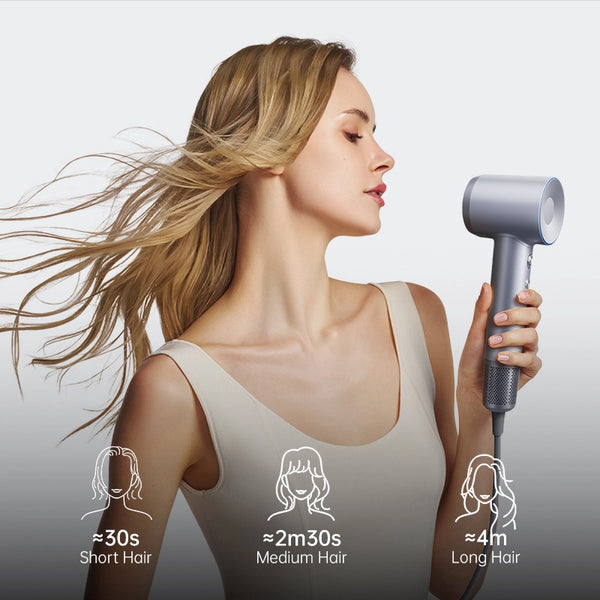 Dry your hair super fast and make it look big and shiny! This dryer is easy to use, keeps hair soft, and stops frizz.