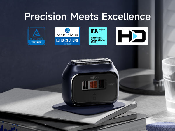 *Half the thickness of an A4 sheet of paper. - [Unprecedented Motor Window ] The world’s first CNC-crafted aerospace-grade aluminum shaver, featuring Apple-grade sandblasting for a durable, smooth matte finish. Its pocket-sized cuboid design includes a supercar-inspired "Motor Window," showcasing Laifen’s iconic motor in action for the first time.