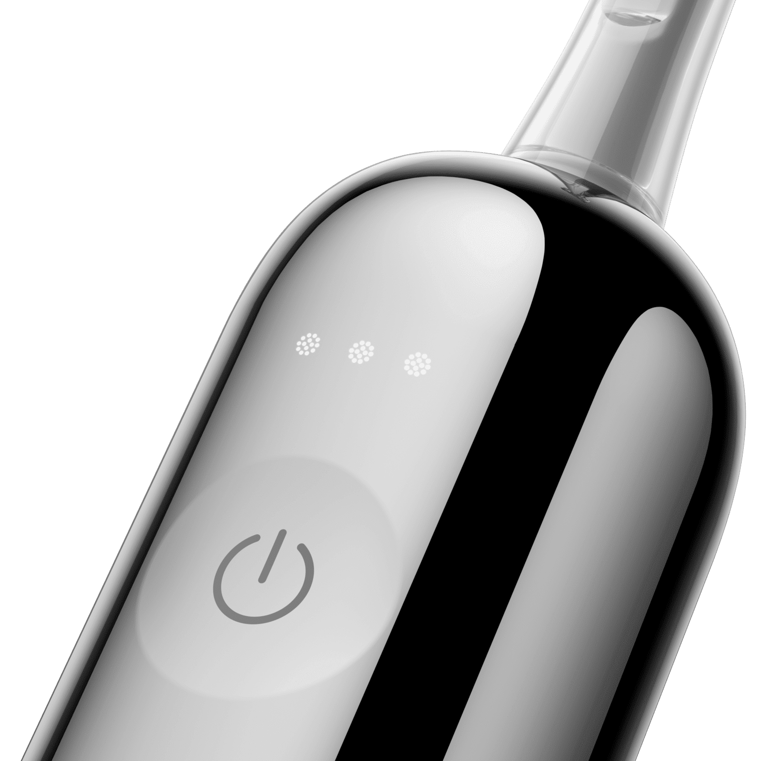 Para garantir uma experiência de escovagem confortável, as cabeças das escovas Wave apresentam um design de equilíbrio dinâmico, adicionando pela primeira vez um contrapeso metálico à parte de trás da cabeça da escova. Este contrapeso elimina as vibrações do eixo do motor, proporcionando oscilações mais estáveis, silenciosas e que não irritam as gengivas.
