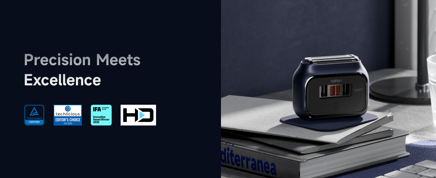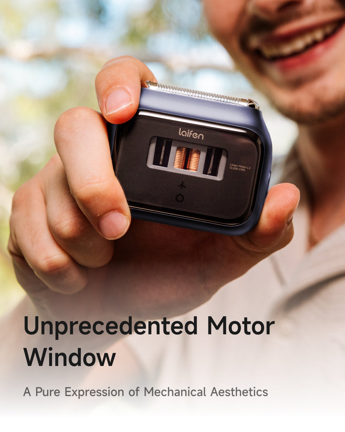 *Half the thickness of an A4 sheet of paper. - [Unprecedented Motor Window ] The world’s first CNC-crafted aerospace-grade aluminum shaver, featuring Apple-grade sandblasting for a durable, smooth matte finish. Its pocket-sized cuboid design includes a supercar-inspired "Motor Window," showcasing Laifen’s iconic motor in action for the first time.