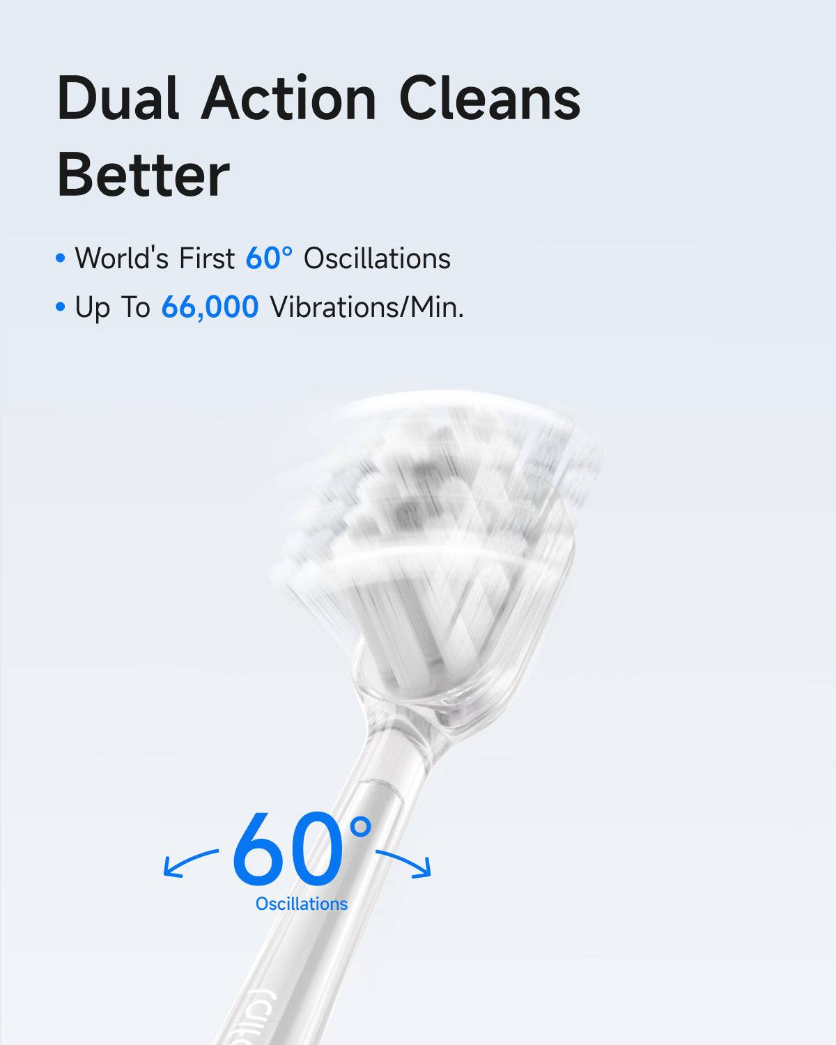 För att säkerställa en bekväm borstupplevelse har Wave-borsthuvudena en dynamisk balanseringsdesign som för första gången har en motvikt i metall på baksidan av borsthuvudet. Denna motvikt eliminerar motoraxelns vibrationer för stabilare svängningar som är tuggummivänliga och tysta.